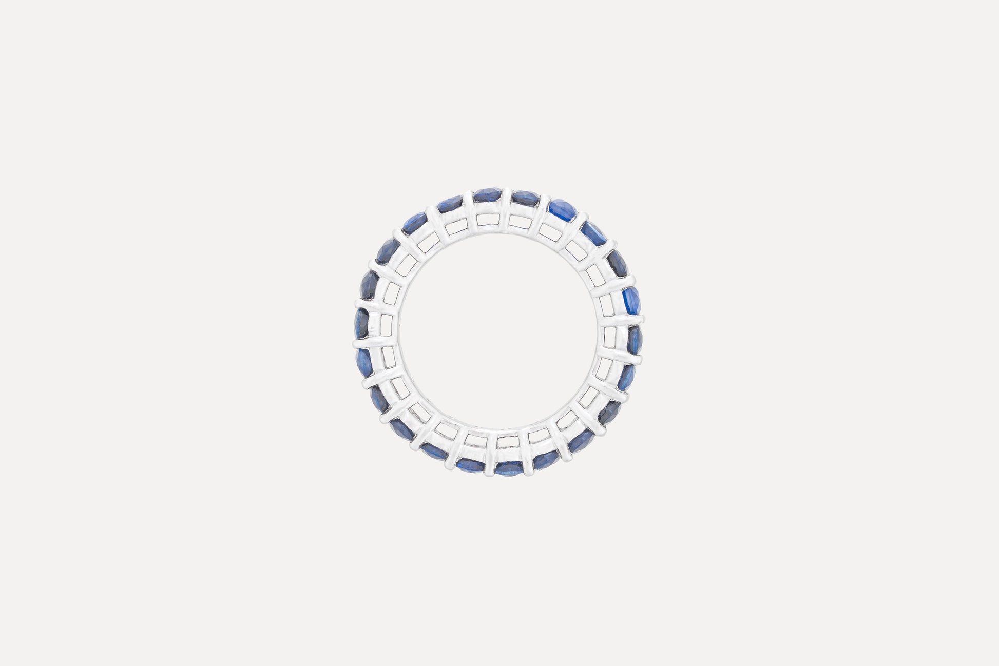Crafted in sterling silver with a full circle of blue oval cut sapphires in a claw setting. Finished in rhodium plating for a dazzling look.