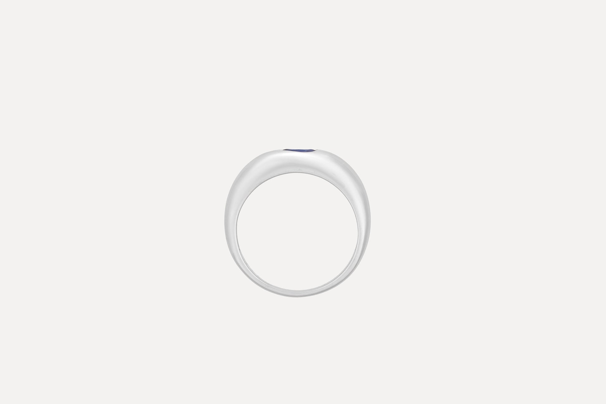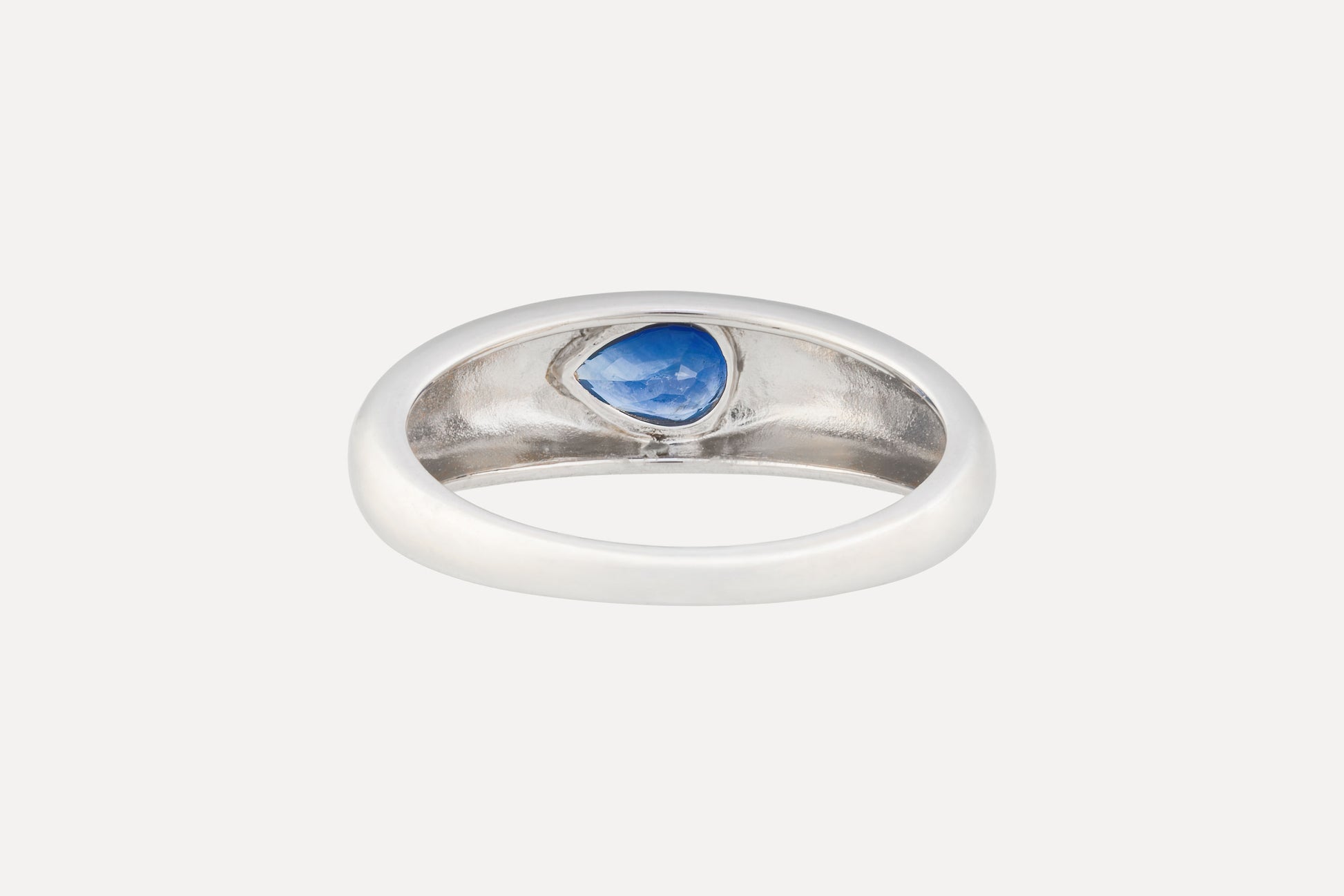 Blue sapphire waterdrop dome ring made in sterling silver with rhodium plating for a dazzling finish