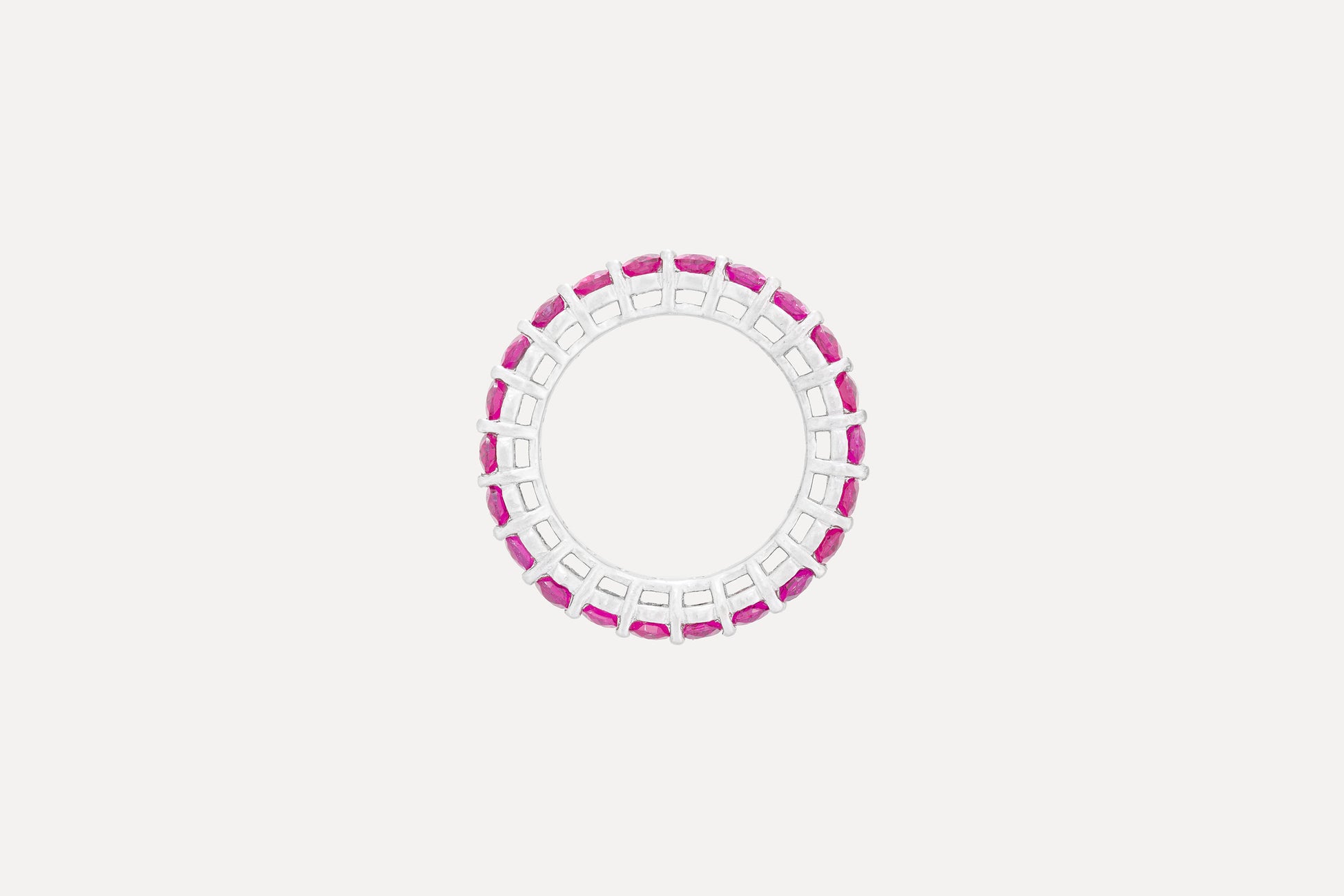 Rhodolite eternity ring in sterling silver with rhodium plating.