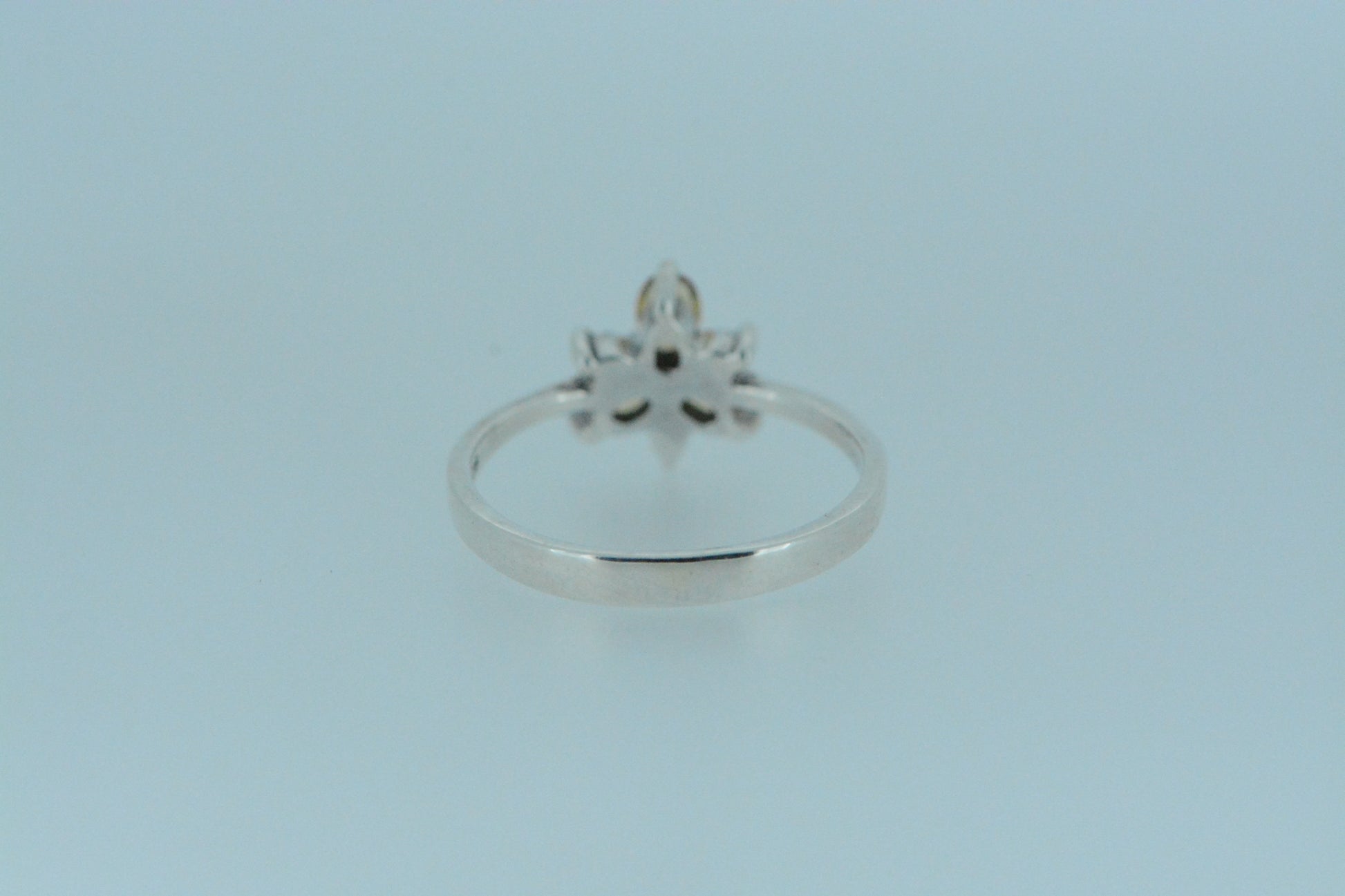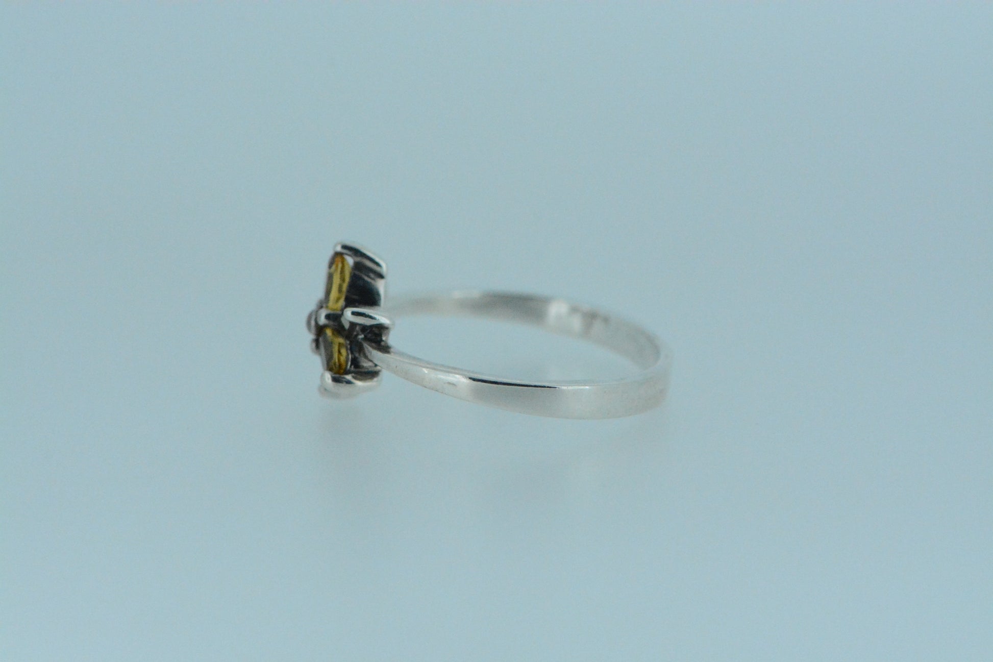 Inspired by nature, this ring presents a mini flower with three oval shaped vibrant yellow citrine gems, made in sterling silver.