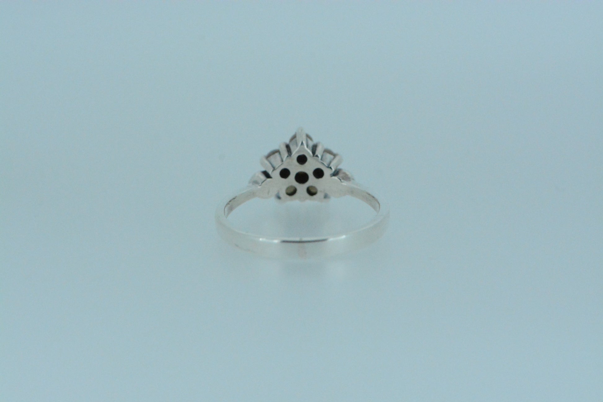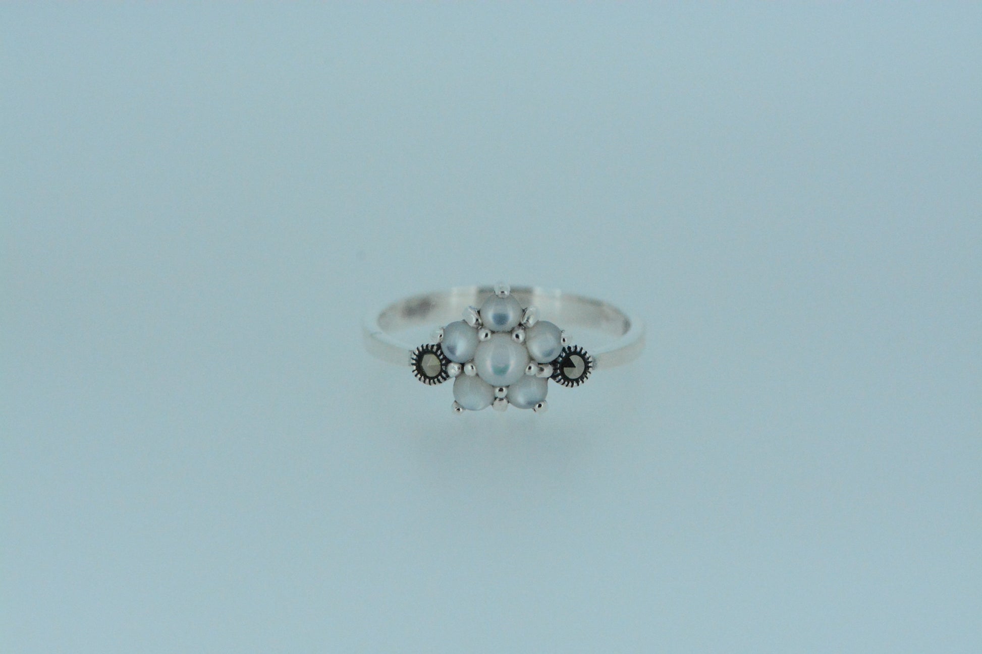 Sterling silver with mother of pearl and marcasite flower ring